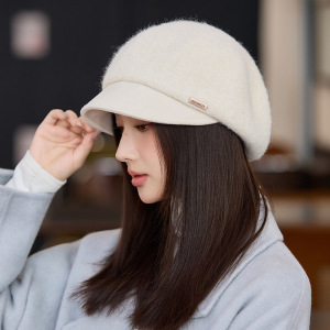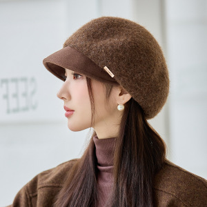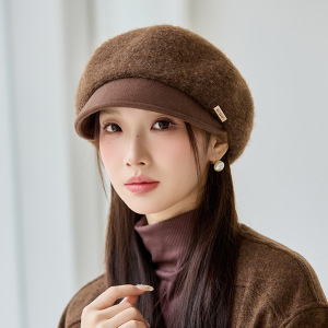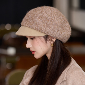 新款百搭加绒加厚小沿贝雷帽秋冬显脸小复古画家帽防风保暖报童帽