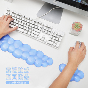 键盘手腕托云朵透明硅胶鼠标垫高颜值防水耐脏柔软电脑办公小桌垫