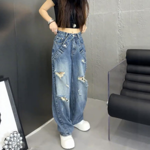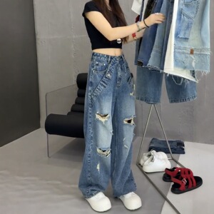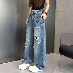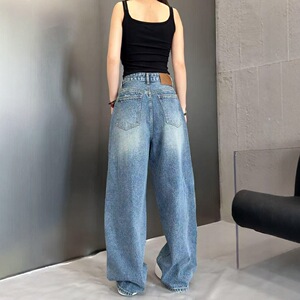 广州十三行高货爆款~2025新款胖mm显瘦宽松梨型身材直筒弯刀裤子