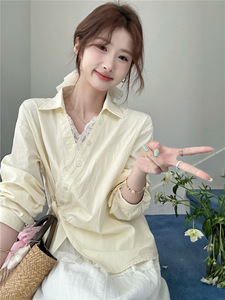 法式气质蕾丝边衬衫2025新款女韩版设计感小众侧绑带独特漂亮小衫