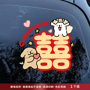 喜字贴婚车贴纸装饰布置套装汽车副车队婚礼结婚用品静电贴大全
