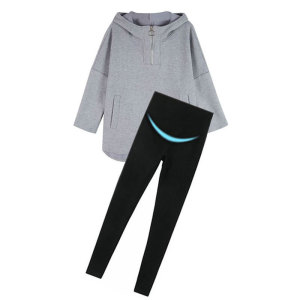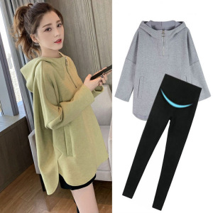 孕妇秋装卫衣中长款宽松长袖小个子上衣2025新款套装两件套春秋款