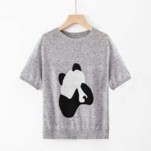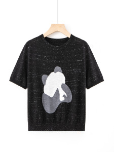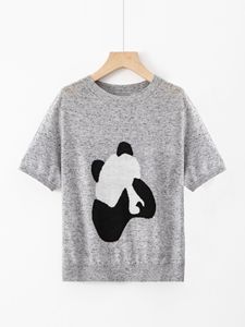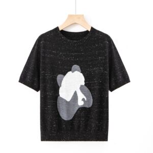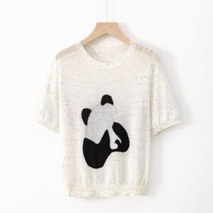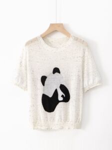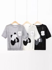 博伟熊猫刺绣针织衫女2025新款小众高级感圆领修身显瘦羊毛上衣女