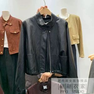 欧货加绒毛内胆立领皮衣外套女冬新款收腰抽绳加厚保暖机车服夹克