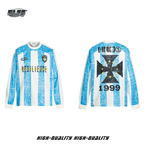 GLFS 美式复古斑驳条纹十字架长袖T痞帅男女oversize 球衣卫衣秋
