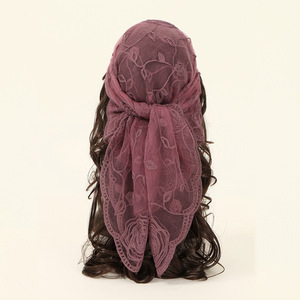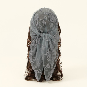 跨境热销新款玫瑰花刺绣涤纶方巾时尚百搭春夏秋装饰披肩包头巾