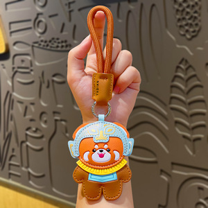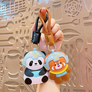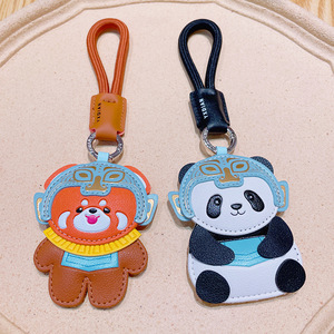 创意三星堆文创小饰品卡通皮革熊猫钥匙扣可爱精致公仔钥匙链挂件