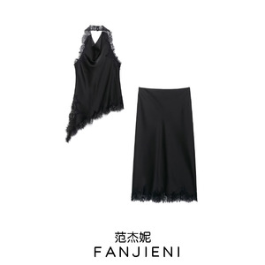 ZR外贸批发 欧美风女装 挂脖领蕾丝不规则上衣中腰半身裙 5919203