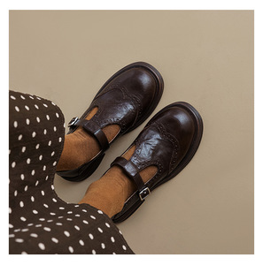 真皮圆头雕花小皮鞋女2025新款通勤小众轻奢乐福鞋中粗跟复古单鞋