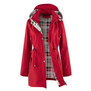 女士风衣格子里布带有内口袋跨境货源欧码女装中长款外套休闲夹克