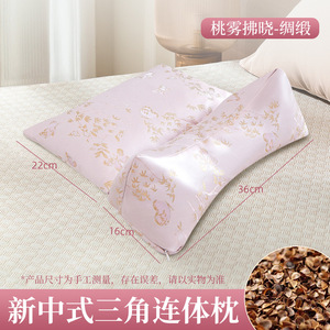 热卖款-【桃雾拂晓】锦缎三角护颈连体枕