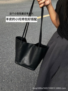 里外全头层羊皮托特包菜篮子包女极简慵懒松弛感单肩包腋下水桶包