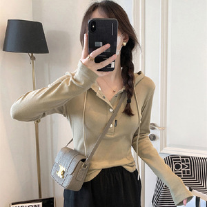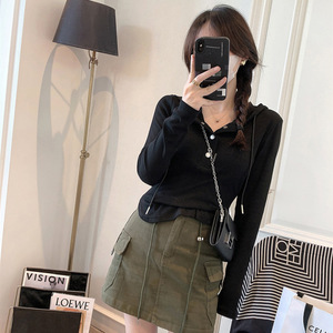 连帽长袖t恤女春秋新款韩版修身显瘦短款上衣打底衫ins潮卫衣