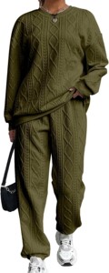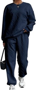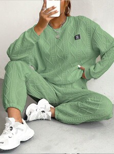 2025秋冬季欧美女装跨境新款时尚螺纹提花长裤休闲两件套套装女