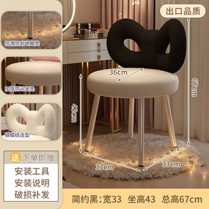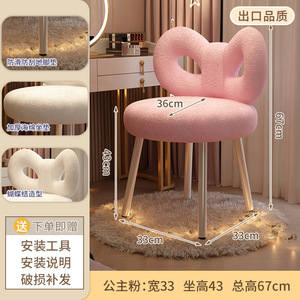 轻奢化妆椅高级感梳妆椅皮质梳妆台凳子简约奶油风卧室女生蝴蝶椅