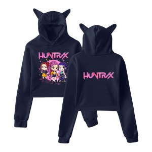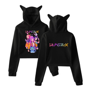 2025跨境新品KPop Demon Hunters欧美时尚猫耳朵露脐卫衣女