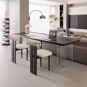黑色实木书桌横厅沙发后长条桌亚克力悬浮双人学习桌极简电脑桌子