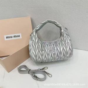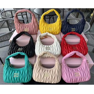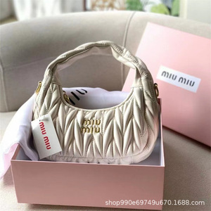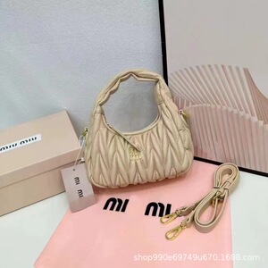 缪miu褶皱小羊皮饺子包千金小姐HOBo腋下包迷你单肩斜跨月牙包女