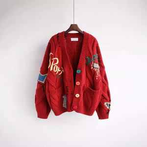 时尚慵懒风刺绣毛衣女秋冬2025新款字母设计感宽松针织衫外套潮