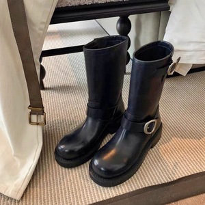 复古金属扣增高圆头粗跟机车短靴马丁靴女