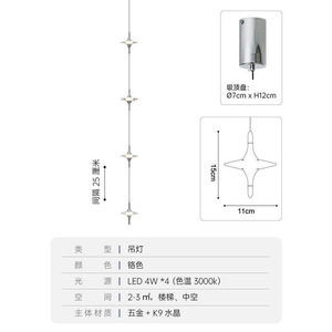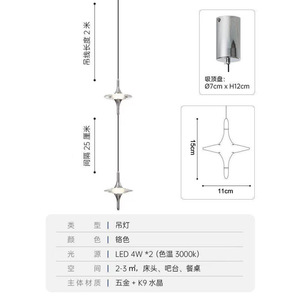 星星水晶吊灯法式轻奢氛围感床头星星吊灯透明线三色变光