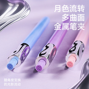 赞仕月隐珠光3支套装按动中性笔高颜值0.5双珠CS碳黑办公签字笔