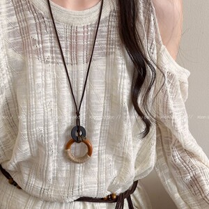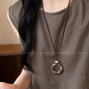7#米色麻绳缠绕圆圈吊坠咖色麂皮项链