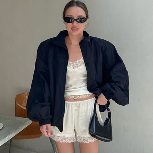 2025秋冬新款宽松百搭黑色户外冲锋衣外套设计感时尚抽绳立领风衣