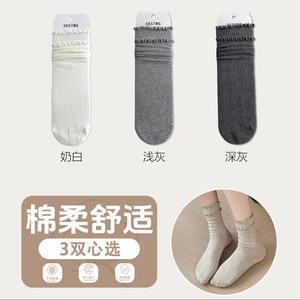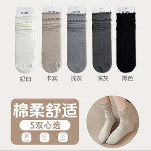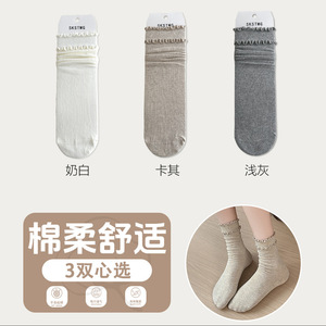 双层木耳边袜子女秋冬中筒袜子夏季女袜堆堆袜miu系袜子纯色棉袜