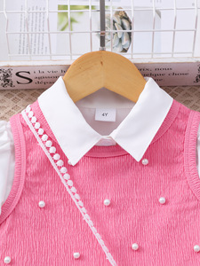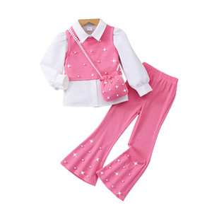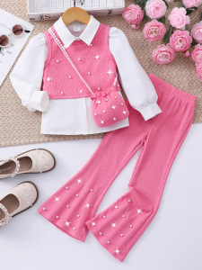 女童(小)两件套,长袖衬衫+马甲+长裤+包包四件