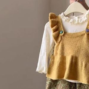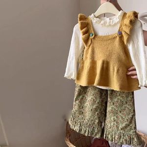 女童套装秋装2025新款儿童韩系花边打底针织背心宝宝碎花裤两件套