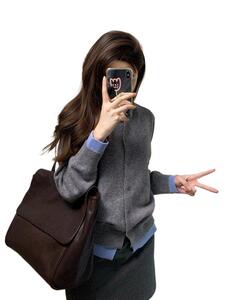 针织衫女韩版灰色软糯早秋款洋气时尚感气质休闲百搭纽扣开衫外套