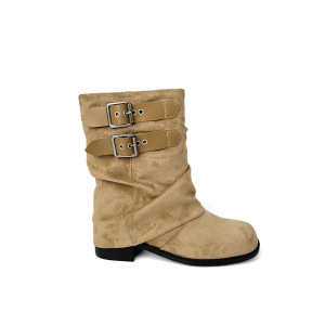 短靴女秋季新款美拉德西部牛仔靴女圆头粗跟厚底废土风堆堆马丁靴