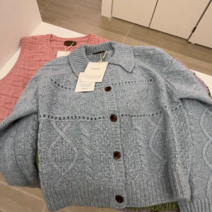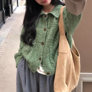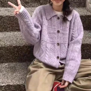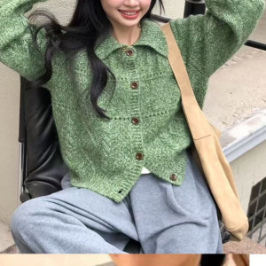2025秋冬新款韩版宽松慵懒风翻领小众设计感针织开衫毛衣外套女装