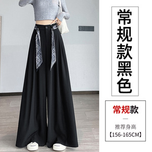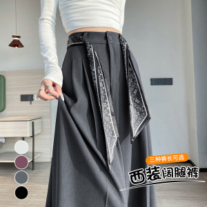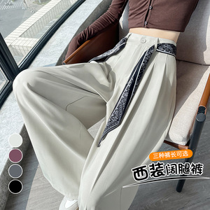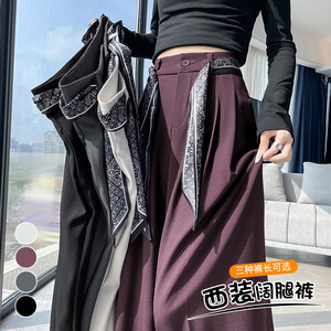 实拍 老钱风西装阔腿裤女2025秋季高腰宽松垂感大裤脚休闲拖地裤