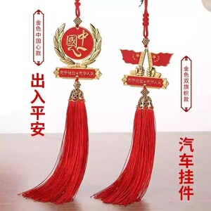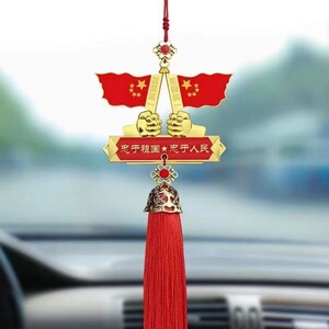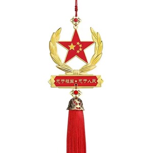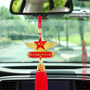 国庆汽车挂件爱国五角星红旗车内后视镜装饰吊坠心军人男车载挂饰