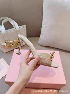 【现货】水钻高跟凉鞋女2025年新款仙女风蝴蝶结法式外穿露趾拖鞋