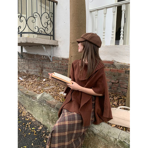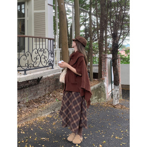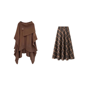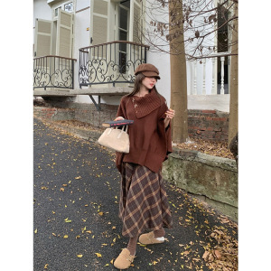 美拉德穿搭法式格纹连衣裙女2025新款秋季不规则超好看毛衣裙套装