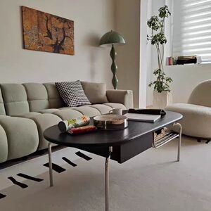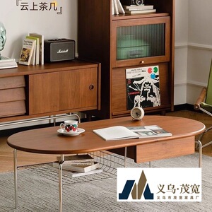 北欧中古黑色茶几椭圆形复古家用不锈钢客厅小户型茶桌简约日式