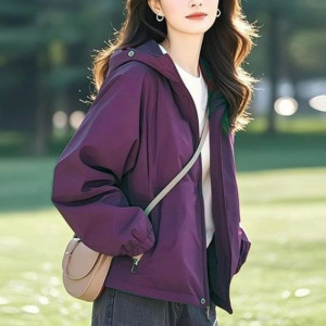 2025春秋冲锋衣时尚连帽外套女宽松感小个子百搭夹克上衣