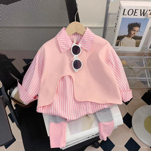 女童秋装套装2025新款儿童衬衫打底裤宝宝洋气两件套时髦小童秋季