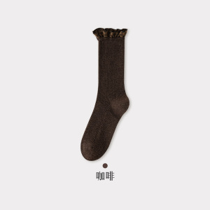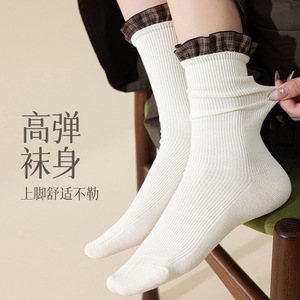 复古花边袜子女中筒袜秋季双针纯色棉袜洛丽塔堆堆袜百搭日系长袜
