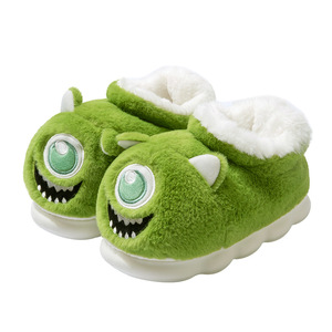 可爱大眼仔棉拖鞋女士冬季加绒保暖室内家居厚底情侣高帮棉鞋