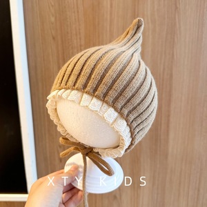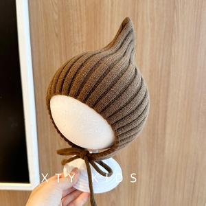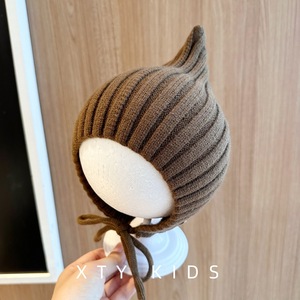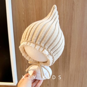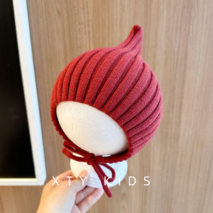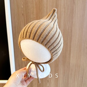 宝宝帽子精灵帽纯色针织护耳帽韩版洋气婴幼儿童毛线帽秋冬保暖帽