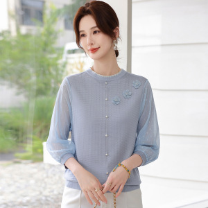 妈妈纱袖洋气小衫薄款秋装上衣中老年时尚女装外穿打底针织雪纺衫