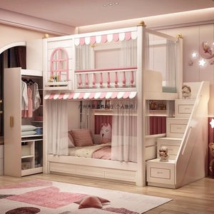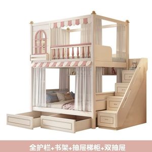 现代简约儿童上下床同宽双层高护栏男孩女孩实木小户型高低上下床