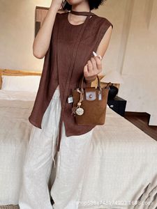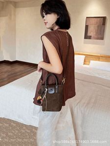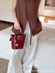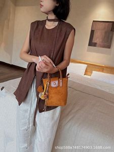 磨砂真皮水桶包包女高级感时尚通勤手拎包复古麂皮绒斜挎包水桶包