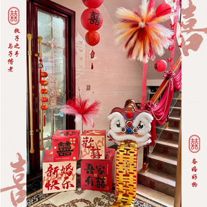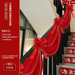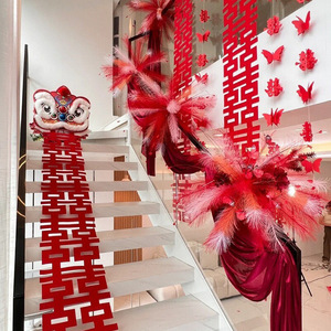 醒狮婚房布置套装结婚礼男女方卧室客厅楼梯扶手长条喜字拉花装饰
