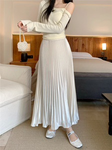 珠光百褶裙女2025秋冬季新款气质百搭松紧腰流光半身裙大摆伞裙子