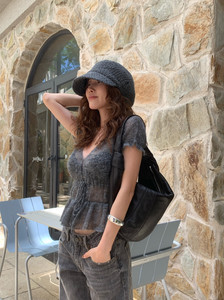 2025秋季新款 你的甜心呀 小女人系带短袖针织开衫女(含6%马海毛)